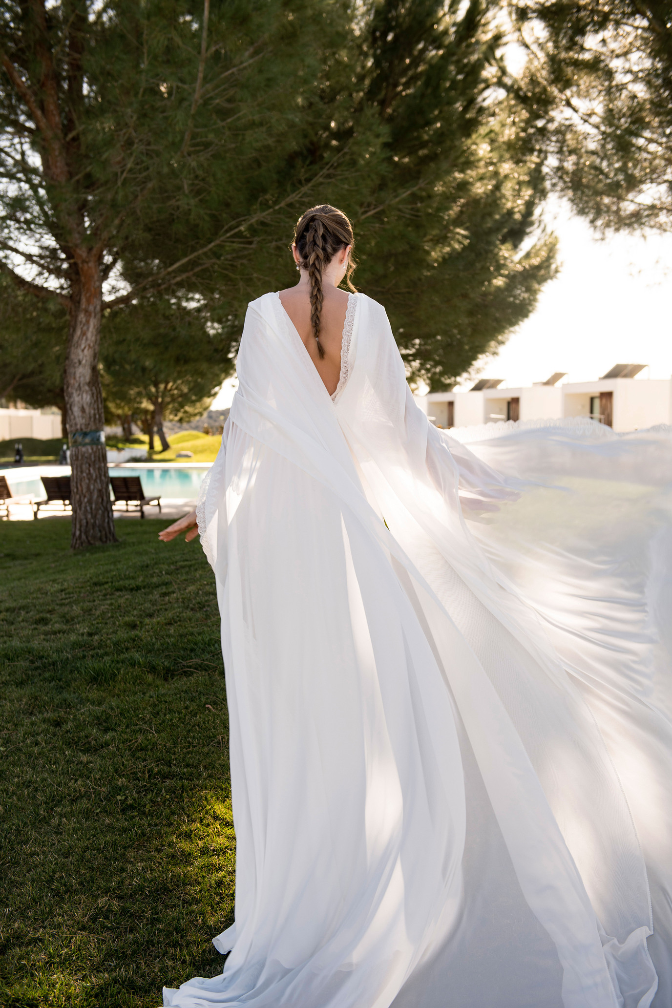 Perfeita para cerimónias ao ar livre ou para noivas que procuram um look versátil e transformador, sem abdicar da simplicidade.