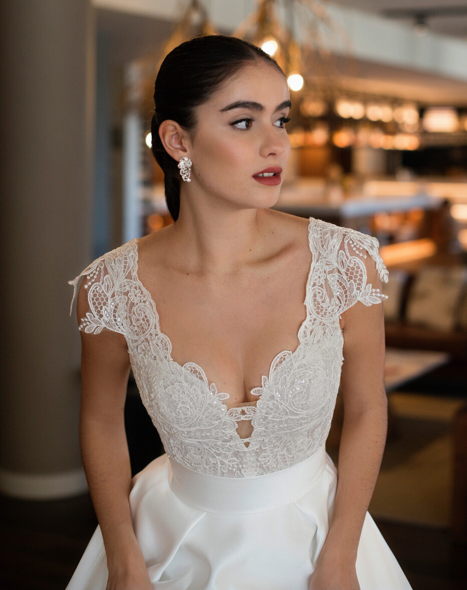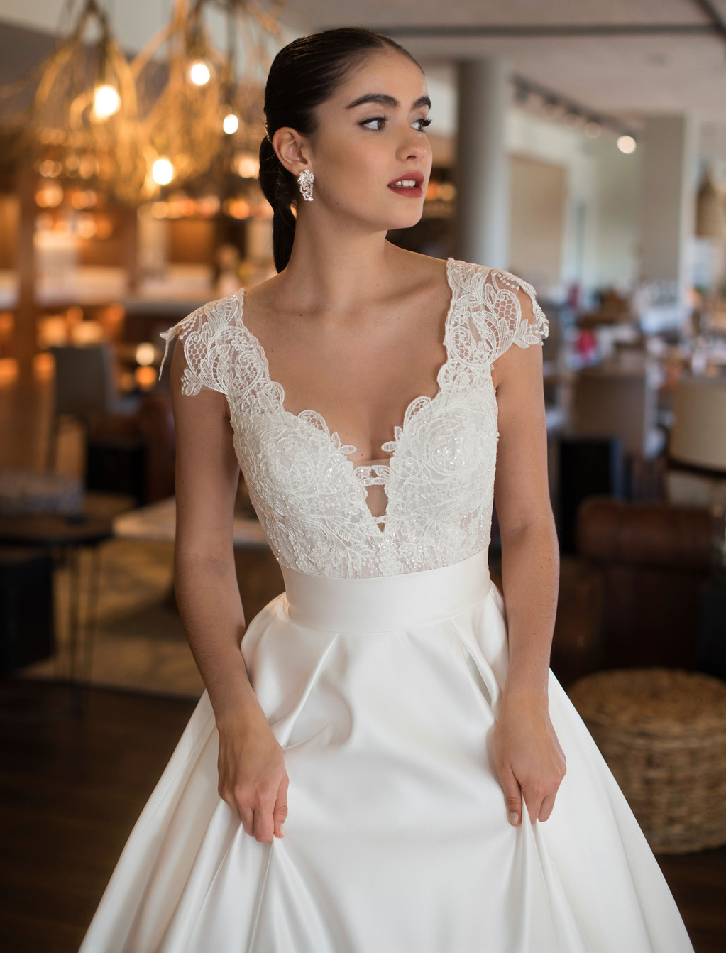 Um modelo que une romantismo, presença e sofisticação — perfeito para noivas que sonham com um look clássico, mas cheio de leveza e encanto.