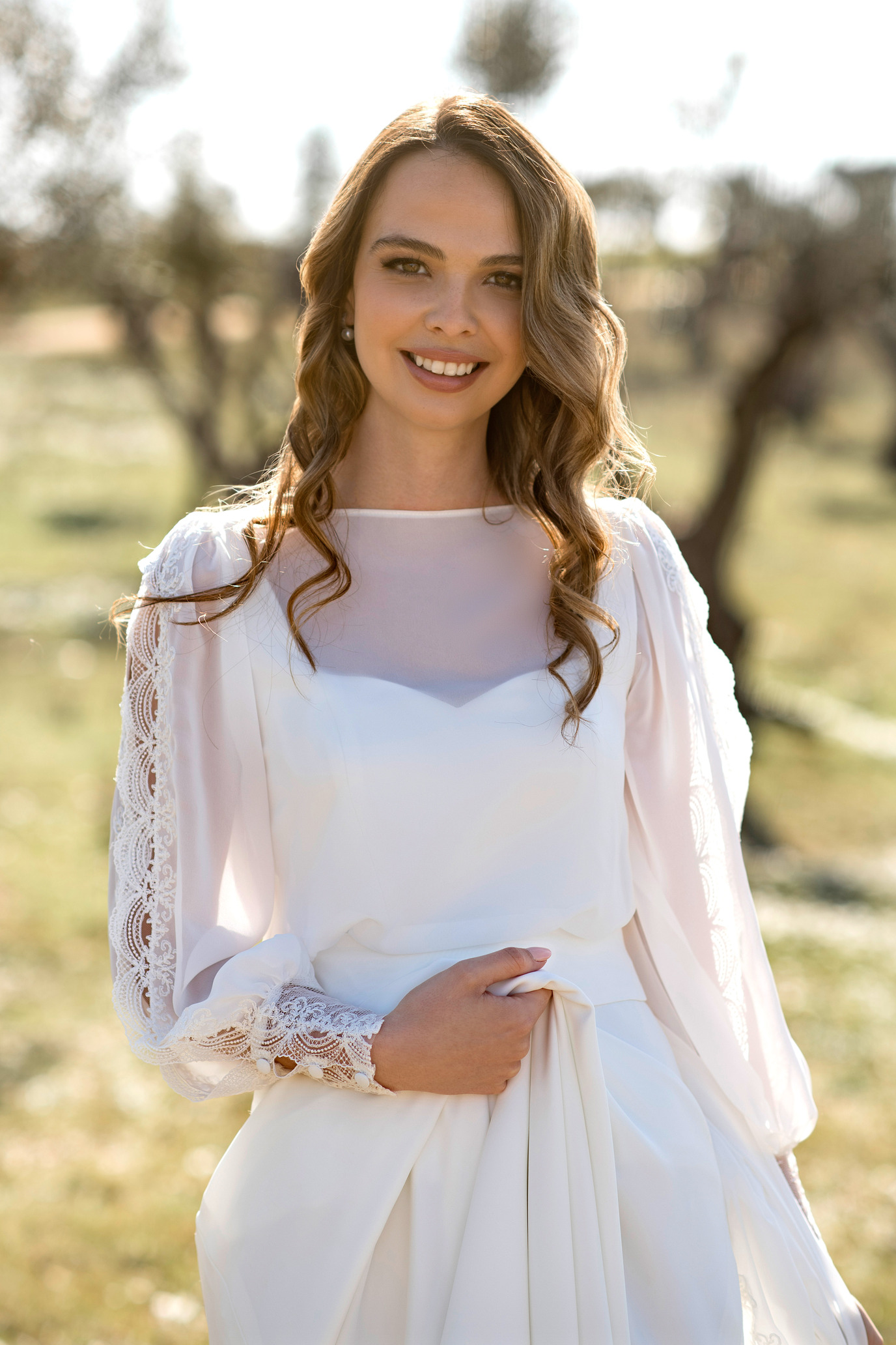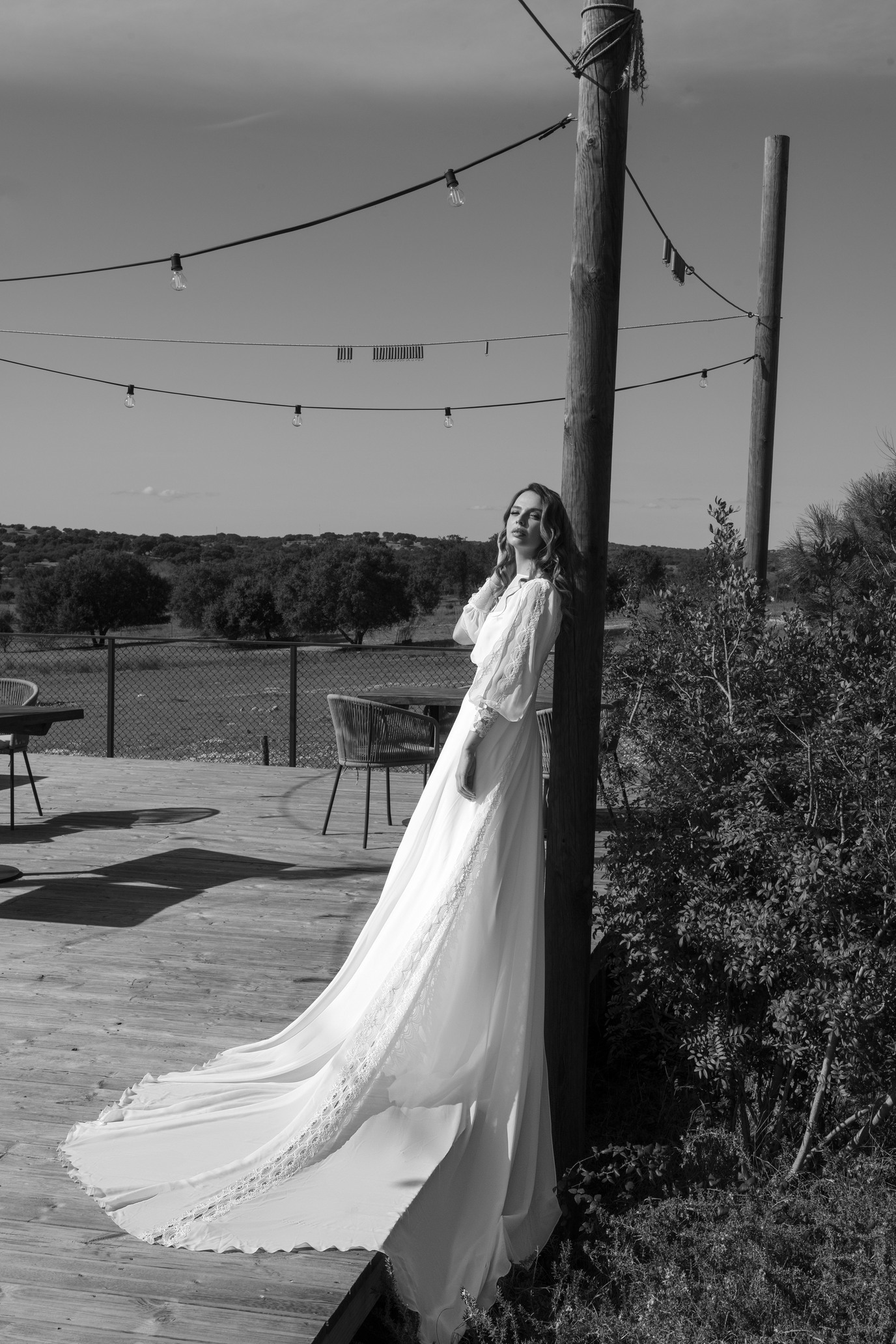 Perfeita para usar na cerimónia e remover na receção, esta peça permite criar dois momentos com um só vestido, sem abdicar do estilo nem da harmonia visual.